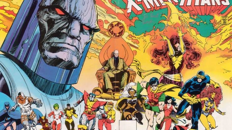 Em 1982, os X-Men juntaram forças com os Jovens Titãs, em uma história em que o Exterminador, trabalhando para o Darkseid, precisou coletar a Força Fênix para o grande vilão da DC, que queria usá-la para conquistar o universo.