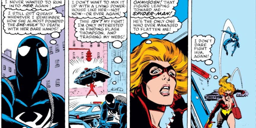 A Titania é uma vilã recorrente que já conseguiu enfrentar de igual pra igual a Mulher Hulk, então já é possível imaginar como ela é poderosa. E ela foi uma formidável oponente do Homem-Aranha na edição 59 de Web of Spider-Man, após o Doutor Destino chamá-la para derrotar o Aranha.