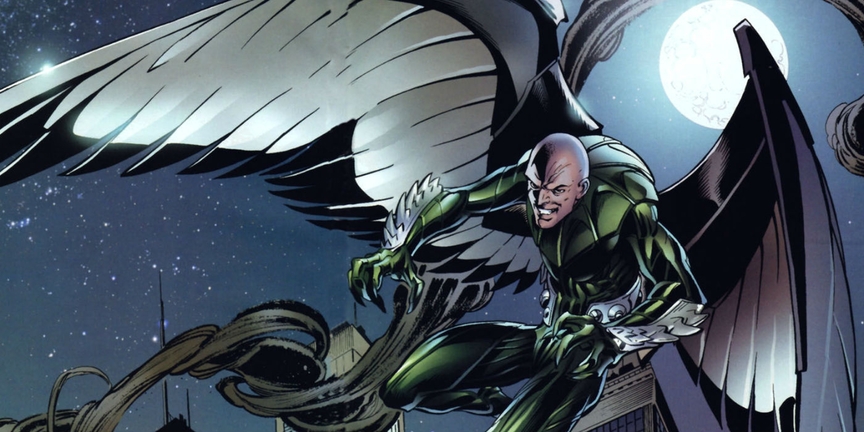 O Abutre utilizou sua habilidade de voo para dar um chute poderoso nas costas do Homem-Aranha, antes de pegá-lo pelos ombros e o jogar em uma torre de água, onde deixou o herói preso. Peter ficou apenas flutuando no local com cara de paisagem.