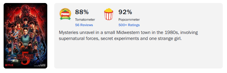 Alcançar entre 88% e 92% logo na largada é um feito importante, especialmente considerando a pressão gigantesca que existe sobre o encerramento da saga de Eleven e seus amigos. Séries de grande sucesso costumam sofrer com expectativas inalcançáveis em suas temporadas finais — basta lembrar de Game of Thrones —, mas Stranger Things parece ter desviado dessa maldição, entregando um conteúdo que satisfaz a narrativa e honra os personagens.