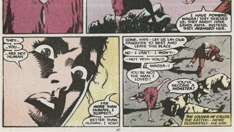 X-Men: Apocalipse brinca com a linhagem de Magneto: Mercúrio admite que Magneto é seu pai, o que foi apenas sugerido em Dias de um Futuro Esquecido. Após os acontecimentos do último filme, Magneto se escondeu do outro lado do mundo, se apaixonou, tentou viver entre os homo sapeins e teve uma filha – mutante – chamada Nina. O que acontece com a família de Magneto é uma reminiscência dos quadrinhos, onde sua filha se chama Anya. Um incêndio tirou a vida de Anya e Magneto matou as pessoas que começaram o fogo com seus poderes. Isso assusta sua esposa – que estava então grávida de Wanda e Pietro na época – e ela o abandona por causa da sua mutação. Infelizmente, o que acontece no filme é ainda pior.
