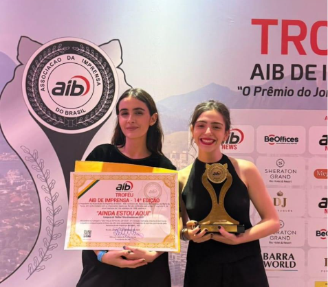 As atrizes Valentina Herszage e Luiza Kosovski, que integram o elenco estelar da produção, estiveram presentes na cerimônia da AIB para receber o prêmio em nome de toda a equipe. Em um momento emocionante, elas leram um agradecimento enviado pelo diretor Walter Salles, que reforçou o papel político e social da arte.