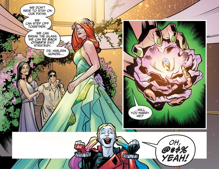 Se você é daqueles fãs da DC que “shippam” a Arlequina e a Hera Venenosa, vai ficar feliz em saber que em uma recente HQ da DC, as duas personagens se casaram.
