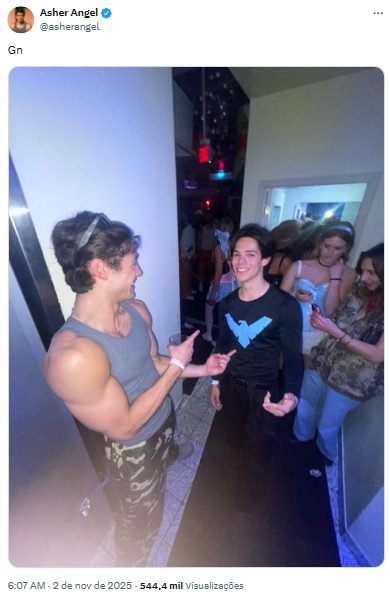 Recentemente, Angel já expressou a vontade em interpretar a versão adulta de Dick Grayson, com quem compartilha uma grande semelhança física com algumas versões dos quadrinhos. E ele não para: em um post misterioso no X/Twitter, Asher aparece usando uma camiseta com o logo do Asa Noturna e a legenda apenas com as letras “Gn”, ainda sem significado evidente.
