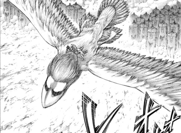 A Tropa de Investigação conseguiu se safar no final das contas com a ajuda do Titã Mandíbula de Falco Grice, que tem a capacidade de voar. No entanto, ficou claro que a batalha contra Eren ficou ainda mais complicada para a equipe com essa descoberta.