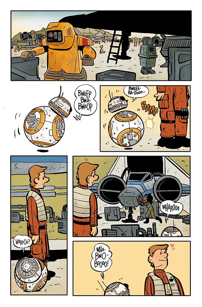 Star Wars: Poe Dameron, mostrará as aventuras do personagem na Resistência e em busca de Luke Skywalker. A revista contará com roteiros de Charles Soule e arte de Phil Noto, enquanto as histórias de BB-8 contará com roteiro e arte de Chris Eliopoulos.