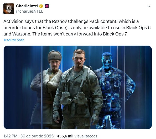 Apesar disso, há um ponto positivo: jogadores que fizerem a pré-compra antes do lançamento, marcado para 14 de novembro, ainda poderão utilizar essas skins em Black Ops 6 e Warzone. Porém, a ausência das skins no novo título gerou frustração entre parte da comunidade, que esperava levar seus visuais favoritos para o novo jogo.