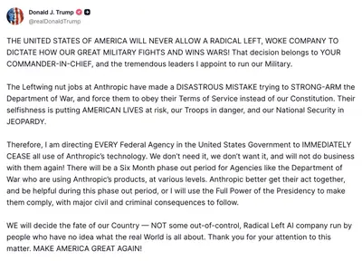 A determinação oficial foi comunicada diretamente ao público através de uma extensa publicação na rede social Truth Social. O banimento chega como o desdobramento mais severo de uma intensa disputa nos bastidores entre a atual administração federal dos EUA e a diretoria da Anthropic. O centro principal desse conflito envolve as diretrizes éticas e a aplicação militar da nova tecnologia.