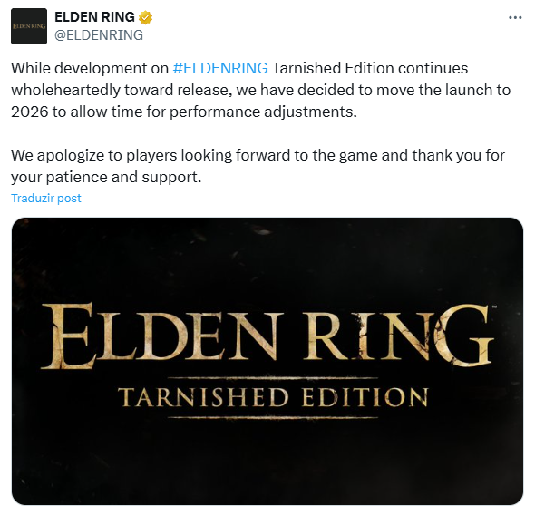 O anúncio foi feito no perfil oficial de Elden Ring no X (antigo Twitter), onde a equipe agradeceu o apoio dos fãs e explicou que a decisão visa garantir que o jogo “atinja o nível de qualidade esperado”. Segundo o estúdio, o desenvolvimento segue “com total dedicação rumo ao lançamento”, mas ainda é necessário mais tempo para ajustes de desempenho e otimização na nova plataforma da Nintendo.