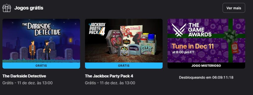 Os dois títulos — The Darkside Detective e Jackbox Party Pack 4 — já estão disponíveis gratuitamente na Epic Games Store e continuam assim até quinta-feira, dia 11, às 13h (horário de Brasília).