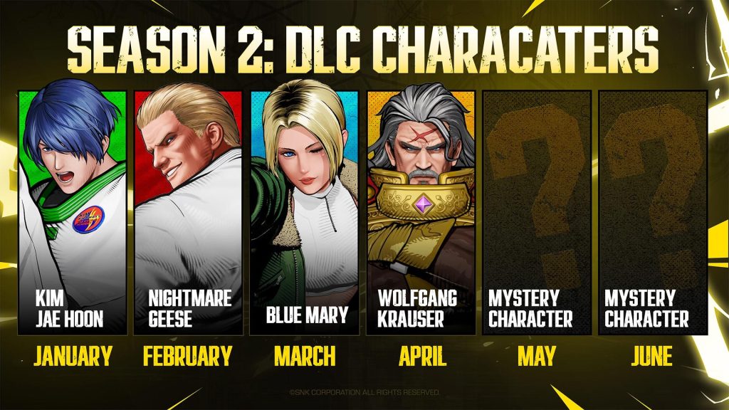 Um dos pontos mais comentados da Temporada 2 é o cronograma agressivo. A SNK planeja lançar um novo personagem por mês, de janeiro até junho. Considerando o lançamento anterior de Joe Higashi em outubro, isso totaliza nove meses consecutivos com novos lutadores adicionados ao jogo.