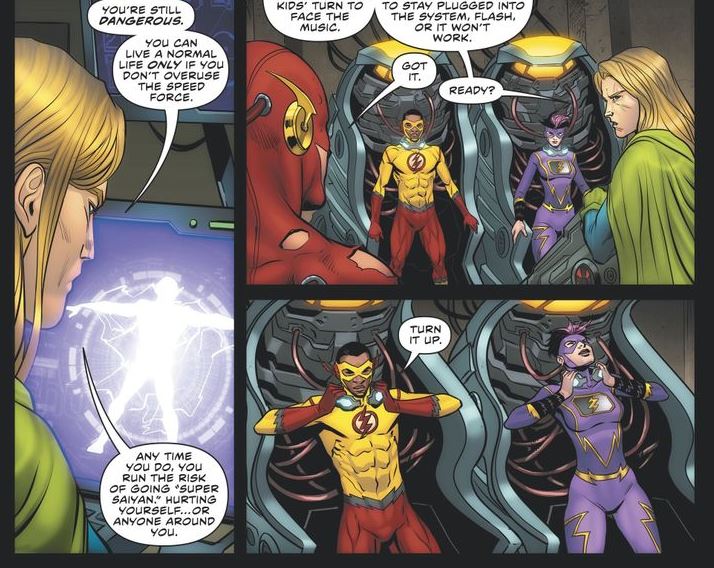 É nesse momento que é feita a menção a Dragon Ball: o Flautista diz para o Flash não exagerar na hora de usar a Força de Aceleração, caso contrário, “vai correr o risco de virar um Super Saiyajin”.