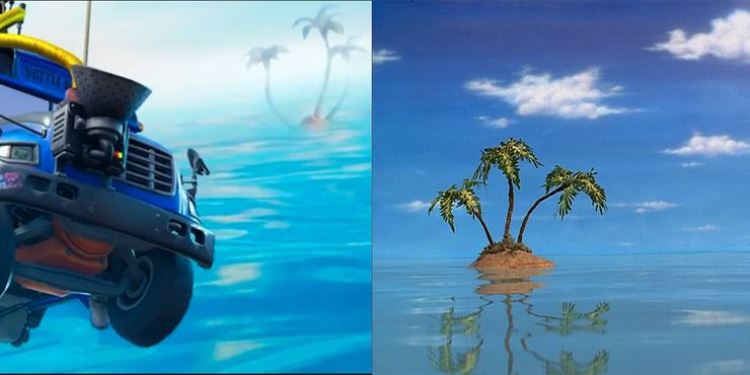 Um ícone do game que foi revelado pela PlayStation Store de a entender que o mapa de Fortnite deve ser inundado na próxima atualização. O que chamou mesmo a atenção foi a presença de uma ilha ao fundo, que é bem parecida com aquela que aparece na abertura de Bob Esponja. Compare abaixo: