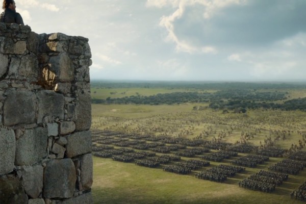 Outra cena do trailer sugere que milhares de homens dos Imaculados e dos Dothraki estão se preparando para uma batalha nos entornos das muralhas de Porto Real, mas não é bem assim.