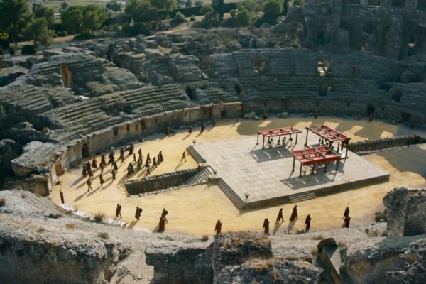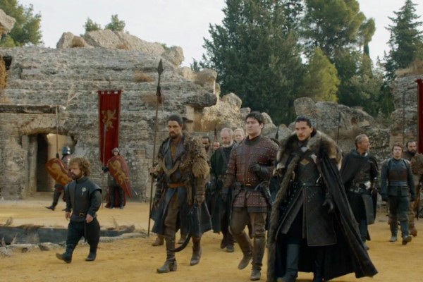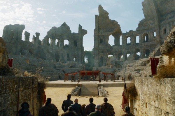Se você prestar um pouco mais de atenção, verá que se trata, na verdade, do Jardim de Cima, casa da família Tyrell. Esse imenso gramado é o mesmo que Olenna Tyrell estava observando antes do ataque de Jaime, no início da temporada.