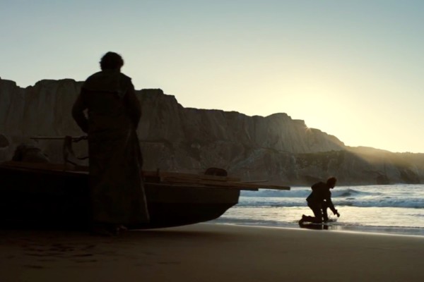 Ele cai na praia da Pedra do Dragão na imagem acima, mas no trailer do episódio, nós o vimos embarcando no navio que ia para Porto Real. Há uma grande chance de ele não ir para o Fosso dos Dragões e tentar, na realidade, resgatar sua irmã.