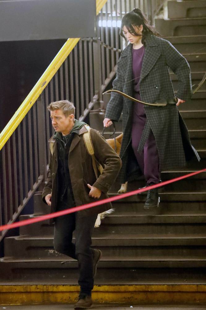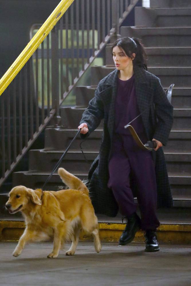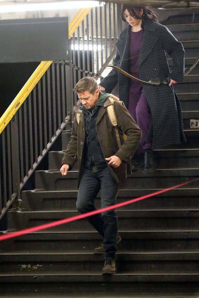 Steinfeld aparece com um traje bem característico e é a responsável por carregar um arco enquanto entra em uma estação de metrô ao lado de Renner e Lucky.
