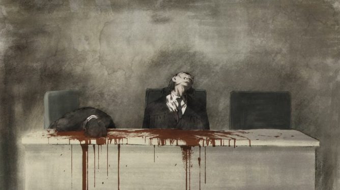 E então conhecemos Higuruma de verdade. Um advogado que recusava casos fáceis e preferia defender pessoas praticamente condenadas pelo sistema. Ele não buscava dinheiro, só justiça. Só que o sistema jurídico estava podre. Corrupção, manipulação e um índice absurdo de condenações. Quando o caso de Keita — inicialmente inocentado — é revertido após pressão da promotoria, algo quebra dentro dele. E é aqui que a obra vira quase um drama criminal.