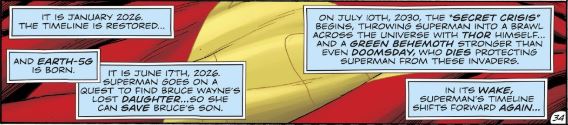 “Em 10 de julho de 2030, a ‘Crise Secreta’ começará e colocará o Superman em uma luta pelo universo contra o próprio Thor e um Gigante Verde até mais forte que Apocalypse, que vai morrer protegendo o Superman desses invasores”, disse.