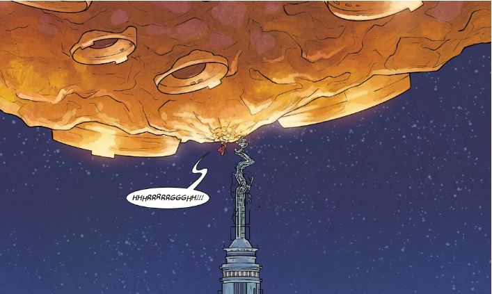 E para você ter noção dessa força sobre-humana, no quadrinho em que aparece a fortaleza no ar, Jane Foster nem aparece simplesmente porque ela é minúscula comparada à essa construção.