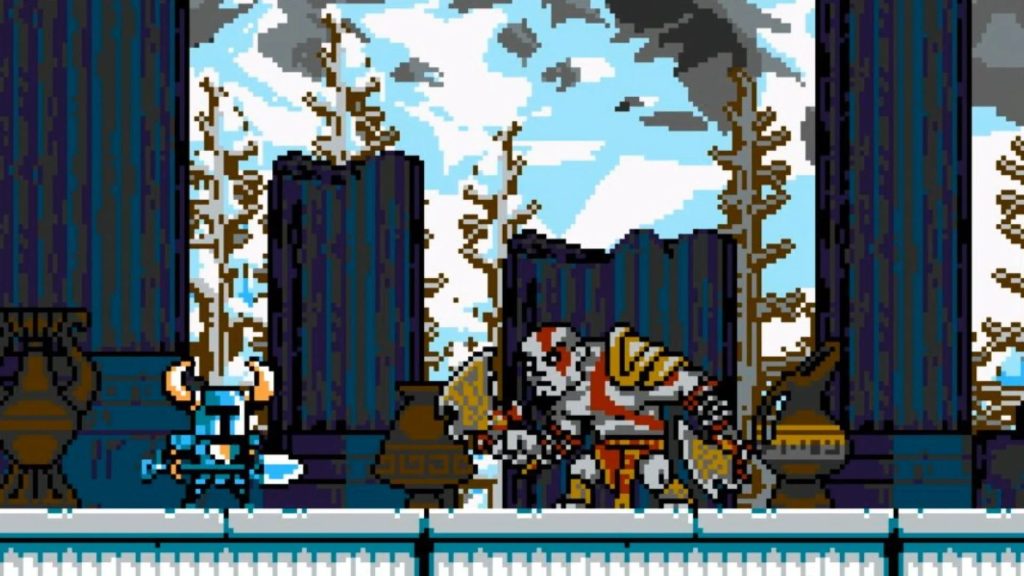 Kratos aparece como chefe opcional nas versões PlayStation de Shovel Knight. Após ser derrotado, ele entrega ao protagonista a Pá do Coveiro, uma arma inspirada em God of War. O diretor Cory Barlog confirmou que o crossover é canônico, ocorrendo entre God of War III e o game de 2018.