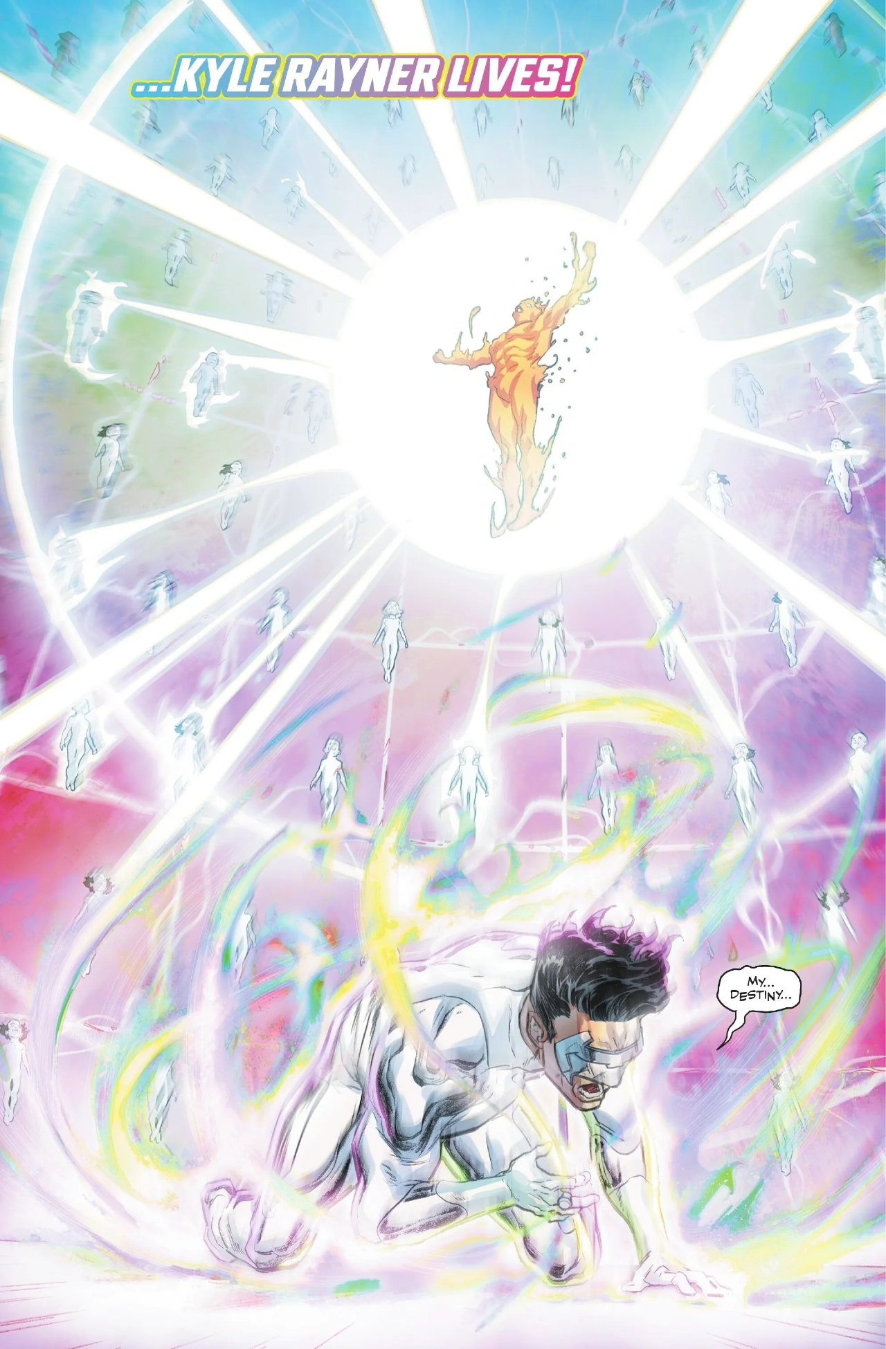 Em seguida, Rayner se transforma em Lanterna Branco e voa em direção ao portal, deixando seus colegas Lanternas para trás. Hal Jordan e os outros o seguem, mas Kyle, determinado, declara: “Eu preciso corrigir isso. Eu vejo… Este é o meu destino.”