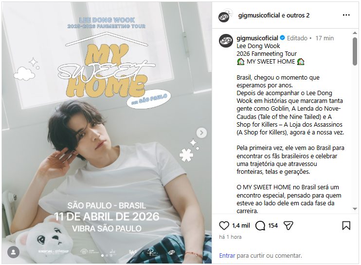 O artista desembarca em São Paulo em 2026 para realizar o encontro de fãs intitulado “MY SWEET HOME”. O evento promete ser uma experiência intimista, celebrando a carreira do ator que se tornou um dos rostos mais populares da onda Hallyu.