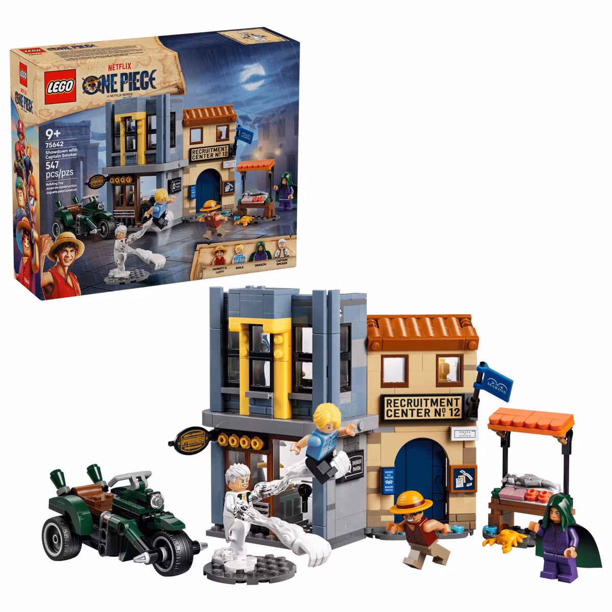O maior lançamento da linha é o Garp’s Marine Battleship, com 1.705 peças e oito minifiguras, incluindo nomes como Zoro, Usopp e Koby. O modelo apresenta diversos elementos interativos e acabamento detalhado.