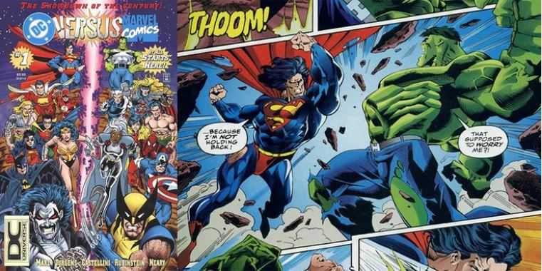 Em 1996, as duas rivais lançaram a minissérie DC vs Marvel, que como o nome deixa implícito, retratou uma batalha entre os heróis dos dois universos. Aquele que perdesse seria apagado da existência.
