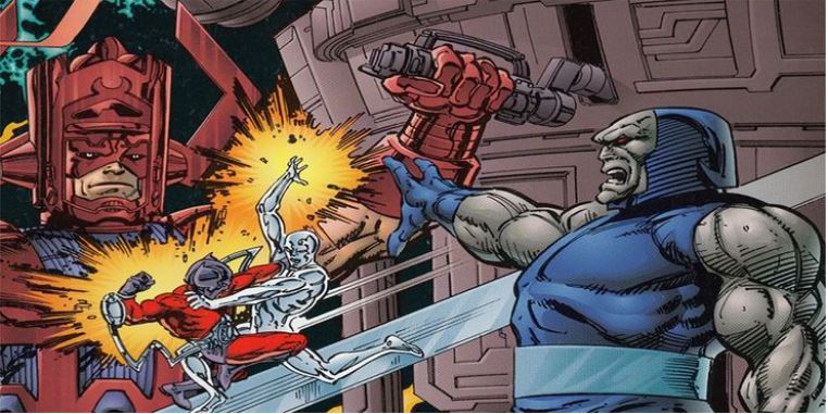 Um exemplo famoso é a HQ Galactus vs Darkseid: The Hunger, que retratou uma espécie de guerra entre os dois vilões, já que o Devorador de Mundos queria se alimentar de Apokolips. A história teve bastante ação, incluindo um duelo entre o Surfista Prateado e Órion. No entanto, o aguardado embate entre Galactus e Darksied foi considerado muito decepcionante.