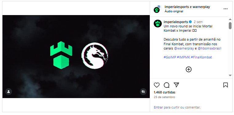O anúncio da nova equipe aconteceu por meio de uma publicação colaborativa entre a Imperial e o Warner Play, no Instagram, chamando a atenção da comunidade gamer. O novo time é formado por Victor Valentim “Valentim” Ramos, David Ruan “DRG” Galdino da Silva, Bruno Henrique “Killer Xinok” Gomes de Sousa e Richard “Lavender Rain” Bittner Junior — quatro nomes que carregam não apenas talento, mas também uma trajetória sólida dentro do cenário competitivo de Mortal Kombat.