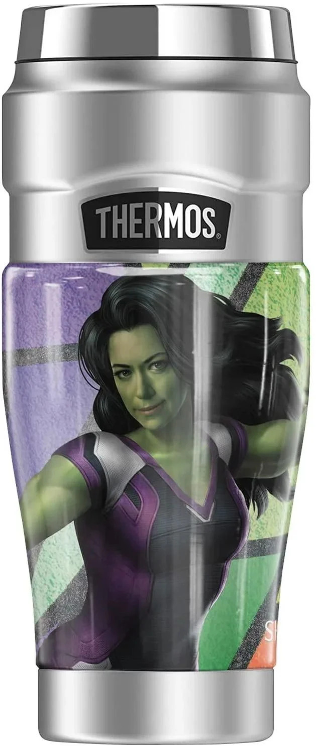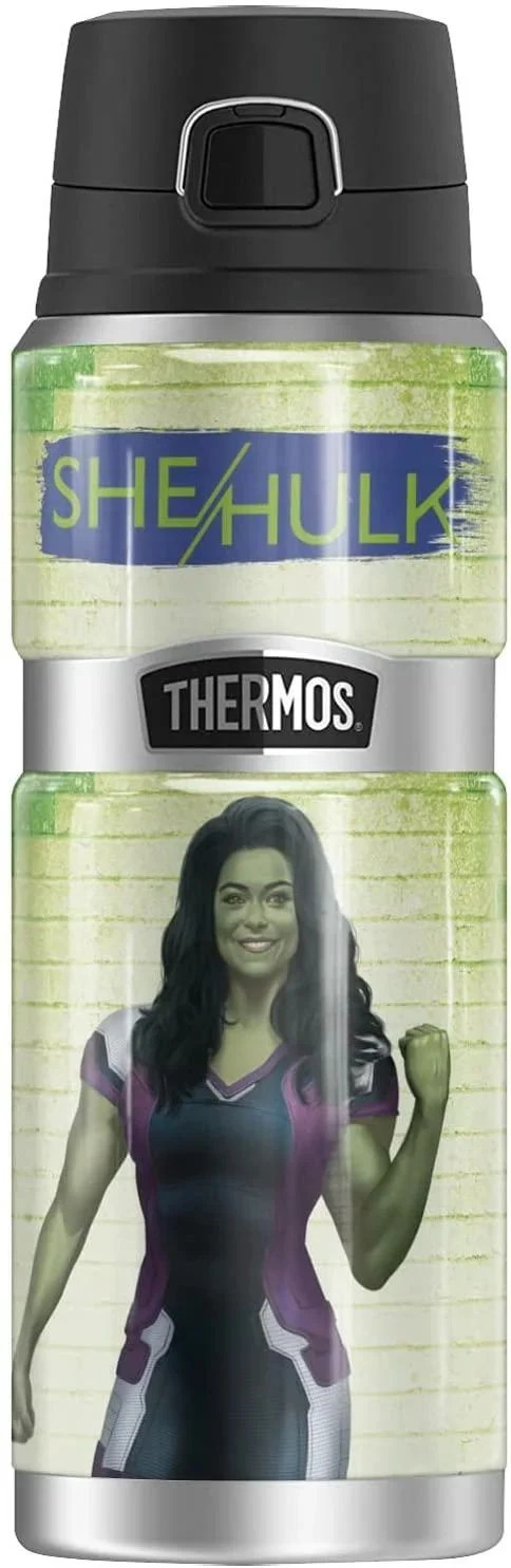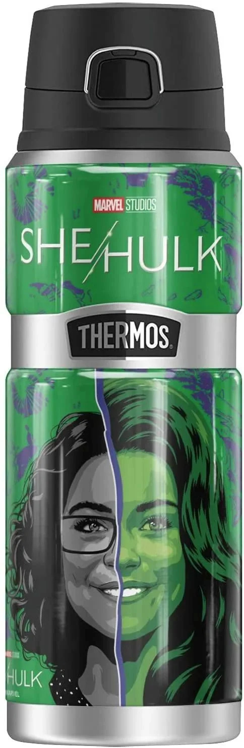 No entanto, pelo menos 3 fotos de garrafas térmicas com a Mulher-Hulk foram salvas e mostram Walters em toda sua glória, inclusive como advogada em uma das imagens, que ressalta a dualidade da personagem.