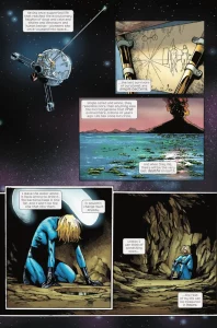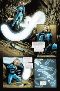 No fundo da caverna, ela encontra uma pequena poça de água, e usa seus poderes como uma espécie de microscópio para descobrir que a poça contém algumas bactérias, que são tudo o que sobrou de vida no planeta.