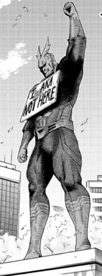 A verdade é que devido ao confronto, os heróis estão desacreditados pela sociedade e isso pode ser visto em uma placa colocada em uma estátua construída em homenagem ao All Might, o maior herói de todos os tempos.
