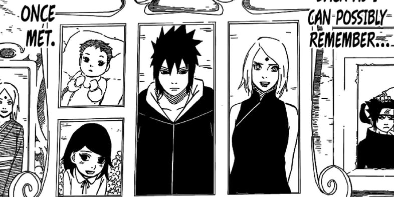 De todos os colegas de Naruto, Sasuke e Sakura foram os únicos membros de suas equipes a se casarem e ter uma família. No epílogo da série, há a implicação de que isso realmente ocorreu.