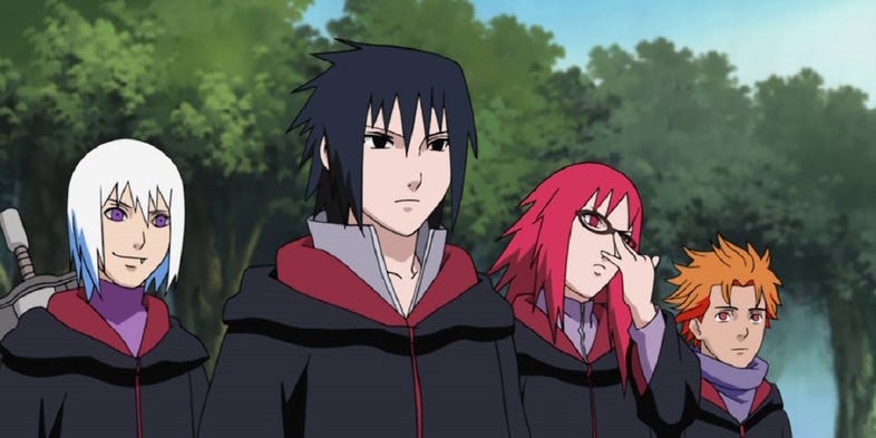 Caso você ainda não saiba, Sasuke é o membro mais novo do Time Taka. O esquadrão de quatro pessoas, originalmente denominado Time Hebi, foi criado por Sasuke com o objetivo de encontrar seu irmão mais velho, Itachi Uchiha, o responsável por assassinar todo o clã Uchiha, excluindo o próprio Sasuke.