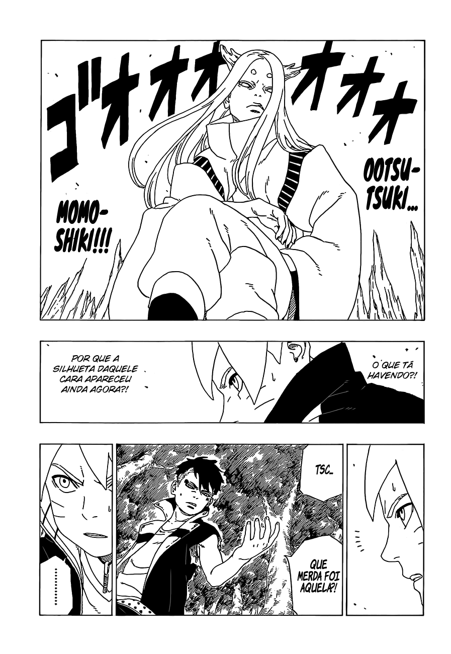 Agora, seguindo em frente, é preciso falar do misterioso selo conhecido como Karma. Até agora, ele só foi adquirido de duas formas: matando um Otsutsuki (caso de Boruto, que matou o Momoshiki) ou artificialmente (caso de Kawaki). Afinal de contas, o que diabos é o Karma? Ninguém sabe ao certo.