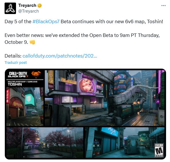 A decisão veio diretamente da desenvolvedora Treyarch, que anunciou a novidade em um post na plataforma X (antigo Twitter), explicando que o objetivo é permitir que mais jogadores testem o game e enviem feedbacks antes do lançamento final, marcado para 14 de novembro de 2025.