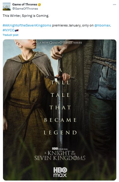O Cavaleiro dos Sete Reinos chega em janeiro de 2026, ainda sem dia exato definido, na plataforma de streaming HBO Max.
