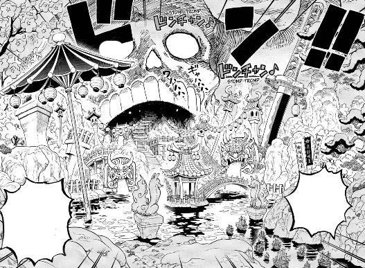O pirata Kaido, que reside em Onigashima, não notou a chegada de Luffy e forças rebeldes ao local, já que estava fazendo uma festa no local. Seu principal aliado, o Shogun Orochi, acreditava que suas forças haviam derrotado os rebeldes.