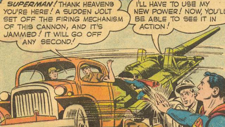 Não, um super-cão não foi a ideia mais estúpida que a DC já teve. Durante a Era de Prata, nós fomos apresentados à maioria dos poderes do Superman, como voar em vez de pular muito alto, visão de calor e sopro congelante. Infelizmente não parou por aí, pois ele também ganhou um arsenal de poderes mongoloides, como super ventriloquismo, super tecelagem e disparar miniaturas de si mesmo pelas mãos – esse eu queria ver o Henry Cavill fazendo.