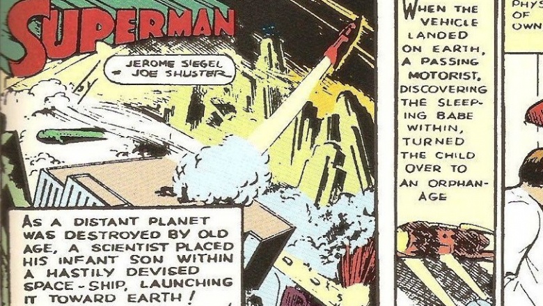 A história original em Action Comics #1 não menciona sob quais circunstâncias Kal-El chegou à Terra, ou o planeta Krypton e nem sua destruição. A família Kent também não existia naquela edição e, na verdade, o bebê Superman foi encontrado por um motorista e entregue e criado num orfanato estatal – como mais da metade dos heróis, diga-se de passagem.