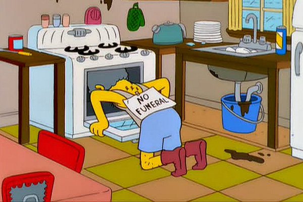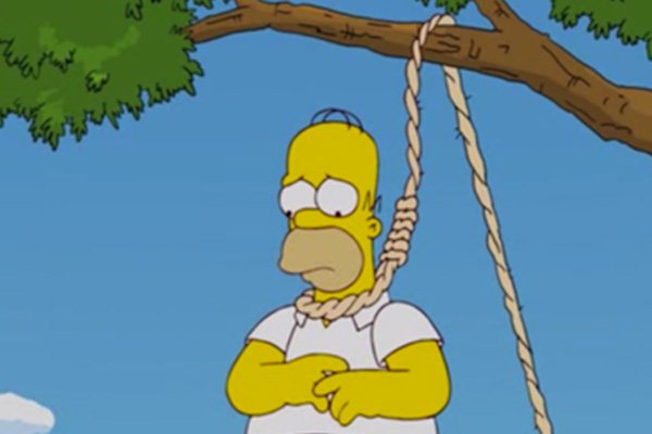 Enquanto estamos no assunto de suicídio – que forma incrível de terminar uma lista sobre um adorável desenho animado, né? -, vamos falar sobre a vez em que Homer decide casualmente se amarrar num pedregulho e se afogar. Não, sério, aconteceu. No episódio “A Odisséia de Homer”, Homer é demitido da usina nuclear e depois de uma cena perturbadora em que ele quebra o cofrinho do filho de 10 anos na tentativa de roubar dinheiro pra comprar cerveja, Homer deixa um bilhete pra sua família e vai pra uma ponte. Ele só é impedido quando sua família o segue e é quase atropelado por um carro. Isso estimula Homer a entrar uma cruzada que lhe dá um novo sentido na vida e, eventualmente, leva a ele a um novo emprego na usina. Então, sim, se você já se perguntou como Homer conseguiu seu emprego como inspetor de segurança, essa é a razão… Uma razão profundamente perturbadora.