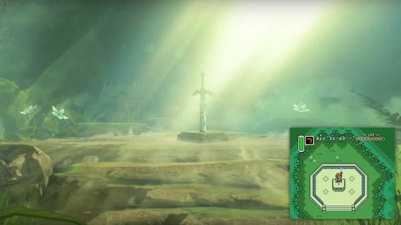 Ao ver a Master Sword selada em seu pedestal no trailer oficial de Breath of the Wild na E3, os jogadores insistiram que não é a lâmina em si que você deve olhar, mas sim as flores. Numa inspeção mais próxima, a folhagem bonita no fundo observada num ângulo certo se alinha perfeitamente com a arte de The Legend of Zelda: A Link to the Past. Considerando este aceno claro pra história da franquia, muitos fãs de longa data de Zelda começaram a inventar suas próprias teorias sobre o que este easter egg poderia significar.