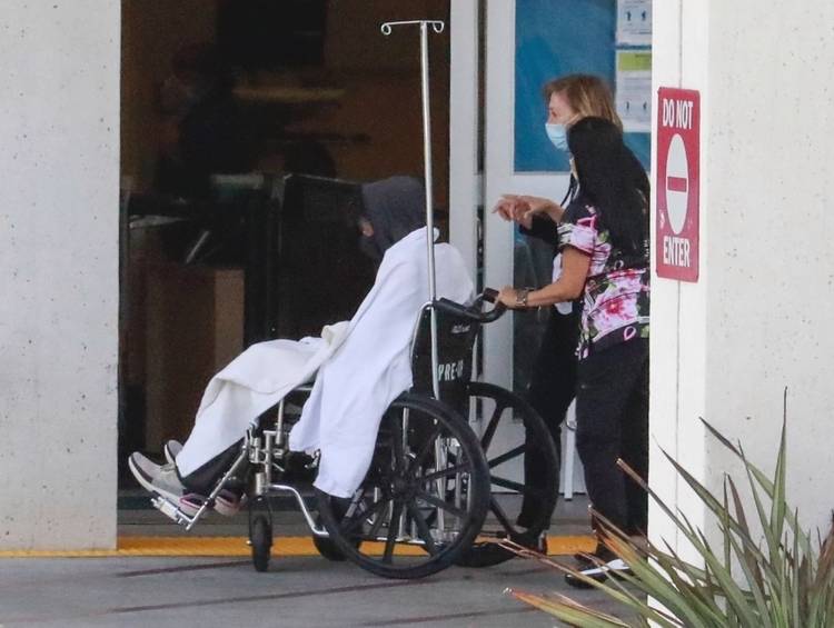 O ator Chadwick Boseman, o Pantera Negra dos filmes da Marvel, de entrada em um hospital em Santa Monica. Ainda não se sabe seu estado de saúde.