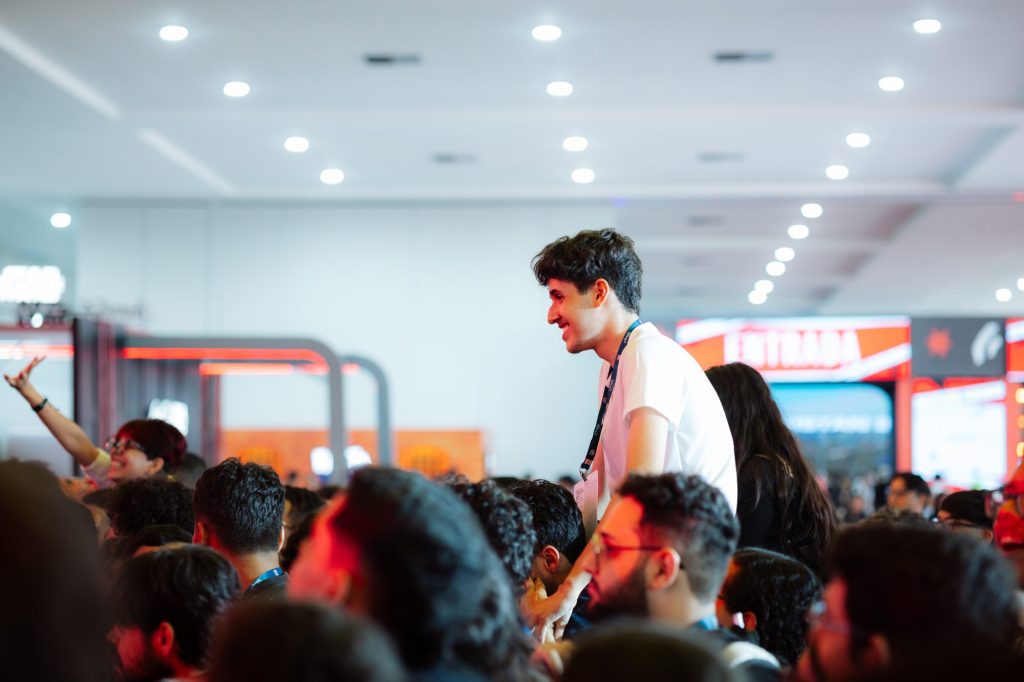 Além dos duelos, Peter promoveu um bate-papo no espaço Red Carpet by Bradesco, com estudantes da rede pública de ensino, público que formou esse primeiro dia de evento.