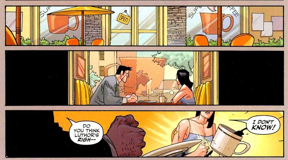 Em Superman – O Legado das Estrelas, Clark e Lois dividem uma xícara em uma cafeteria. A conversa vai além do romance, trata de identidade, humanidade e conexão, temas que definem o Homem de Aço.
