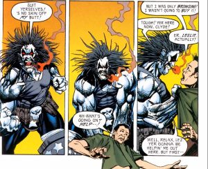Já Mr. Mxyzptlk, da Quinta Dimensão, não só sabe que está em uma HQ, mas faz referências ao mundo real, ao universo da Marvel, e até conversa com o leitor.