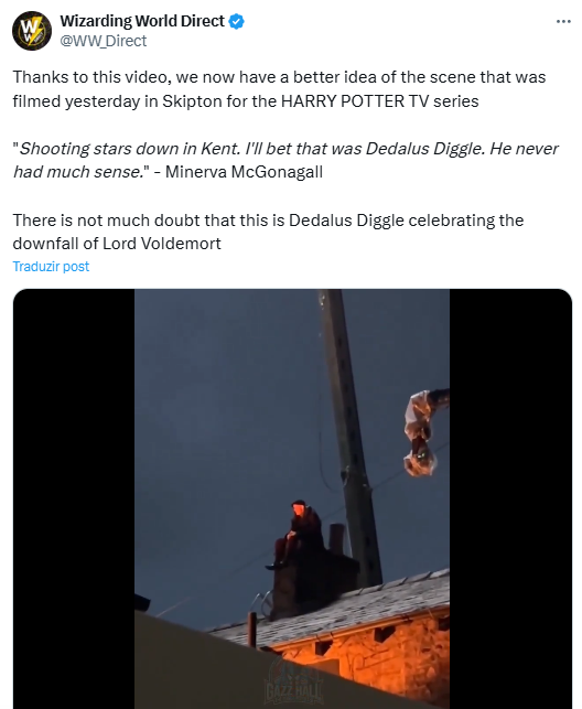 As filmagens do remake de ‘Harry Potter’ para a HBO continuam a todo vapor, e novas cenas seguem despertando curiosidade entre os fãs. Após os primeiros vislumbres mostrarem momentos inéditos — como Válter Dursley em seu trabalho, Dumbledore conversando com Nicolau Flamel e o ataque de Voldemort aos Potter em Godric’s Hollow —, um novo vídeo vazado chamou atenção por um detalhe misterioso: um bruxo em um telhado, erguendo a varinha para o céu.