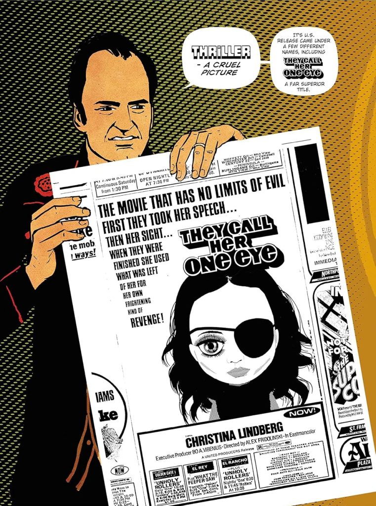 Ao longo de mais de 240 páginas (em um generoso formato de 20x28cm), AME mergulha nos anos de formação de Tarantino. A HQ explora desde os dias em que ele era “apenas” o cara da videolocadora com um conhecimento enciclopédico sobre filmes B, até os bastidores explosivos de suas maiores produções.